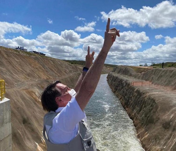 O presidente Jair Bolsonaro foi, nesta sexta-feira (26), para Juazeiro do Norte (CE), onde “inaugurou” o reservatório Jati, obra que começou a ser executada em 2007 pelo ex-presidente Luiz Inácio Lula da Silva (PT-SP) e é parte do projeto de transposição do rio São Francisco.