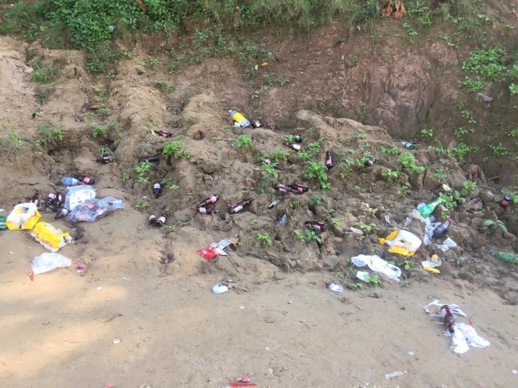Cerca de meio quilômetro de areia entupida de garrafas de cerveja, bituca de cigarro, garrafas plásticas, sacolas plásticas e o que mais você puder imaginar.