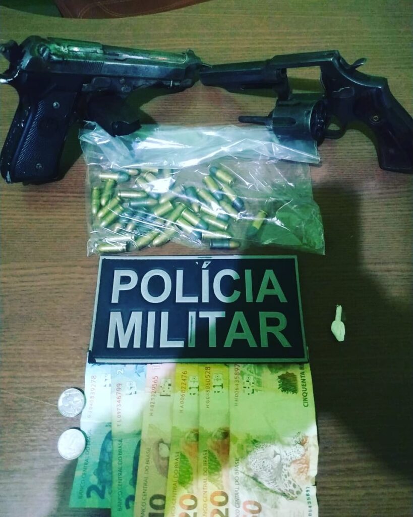 Durante patrulhamento na Rua Valentim Ferreira, Bairro Centro, os Militares avistaram os dois acusados em atitude suspeita. Mediante abordagem aos mesmos, os PMs encontraram uma pistola 9 mm, com 10 munições intactas e um revólver calibre 38, com 04 munições intactas, além de 01 trouxinha de cocaína.