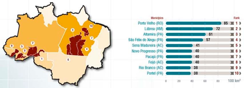 São 1.499 quilômetros quadrados de desmatamento na Amazônia Legal, um aumento de 68% em relação a agosto de 2019, quando o desmatamento somou 893 quilômetros quadrados. O desmatamento detectado em agosto de 2020 ocorreu no Pará (37%), Amazonas (19%), Rondônia (14%), Mato Grosso (9%) Maranhão (2%), Roraima (1%) e o já citado Acre.