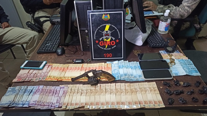 A guarnição policial do Giro estava fazendo um patrulhamento de rotina na região quando recebeu a informação que bandidos efetuaram um roubo e fugiram em um veículo modelo Fiat Palio, de cor cinza. Os criminosos foram encontrados na Via Chico Mendes e foram abordados. Em posse dos assaltantes, foram encontrados os dois caixas roubados com o dinheiro da loja, um revólver calibre 38 sem munição e 12 trouxinhas de cocaína.
