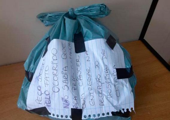 Dias depois do furto, o ladrão se arrependeu e devolveu o pacote com um bilhete de desculpas: “Não sabia que era pras crianças com câncer. Entregar na recepção do hospital de clínica“, escreveu o bandido.