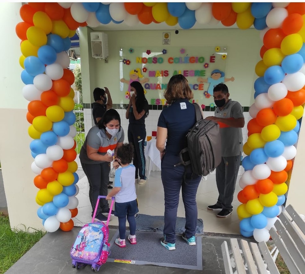 “Começamos hoje com o ensino infantil, do maternal, pré 1 e pré 2. Na primeira semana foi ainda tudo virtual e hoje começamos a receber os alunos de forma presencial. Aqueles que optaram por ensino remoto, vão continuar sendo assistidos pelas plataformas. A maioria optou por presencial, então vamos trabalhar em formato de rodízio. Os alunos do 9º ano do ensino fundamental e do 3º ano do ensino médio voltam na quarta-feira [27] com esse mesmo formato”, afirmou o diretor.