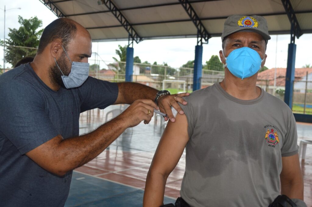 Na manhã desta Quarta-feira (07) a Prefeitura de Sena Madureira, através da Secretaria Municipal de Saúde deu início à vacinação nos profissionais de Segurança Pública que atuam no município. Seguindo as normas do Ministério da Saúde (MS) nesta etapa estão sendo vacinados os profissionais acima dos 40 anos de idade, incluindo os agentes da Polícia Militar, Polícia Civil, e Polícia Penal.