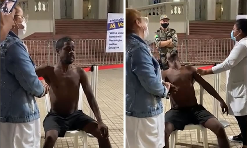 O ato de vacinação foi acompanhado por curiosos, profissionais da saúde e também da Polícia Militar, que garantiram boas gargalhadas com a reação de Nego Bau para com a vacina. Duas profissionais de saúde ajudaram a acalmá-lo. “Coloca a mão na minha cabeça”, pediu Nego Bau a uma delas, que prontamente atendeu ao pedido.