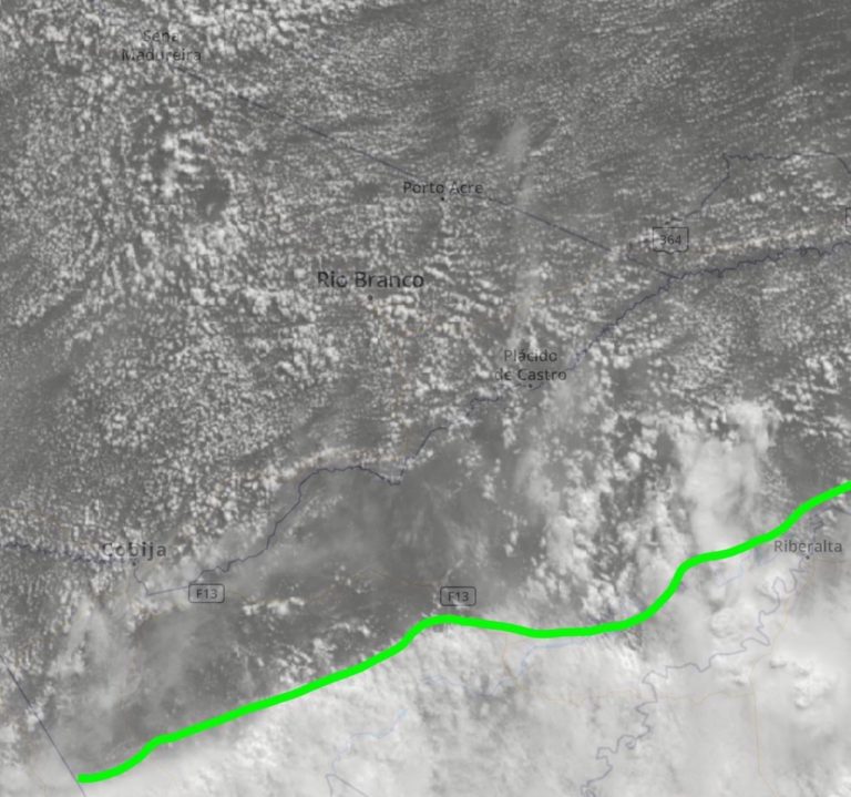 O pesquisador, Davi Friale, há pouco, alertou sobre a possibilidade de temporais, com ventanias, chuvas fortes e queda brusca da temperatura nas próximas horas, principalmente no período da tarde nos municípios acreanos. A mudança do tempo é por conta da chegada de mais uma onda de frio que avança rapidamente em direção ao estado. Na fronteira com a Bolívia, o tempo já mudou bruscamente.