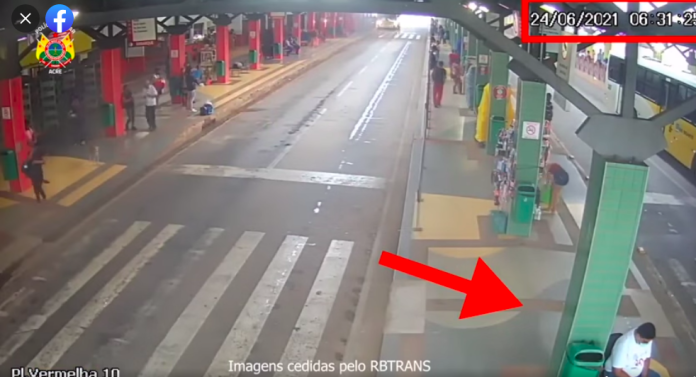 Um vídeo divulgado pela Polícia Militar mostra o momento em que um funcionário que presta serviços para a RBTrans, estava em seu posto de fiscalização no Terminal Urbano de Rio Branco, quando começa a passar mal.