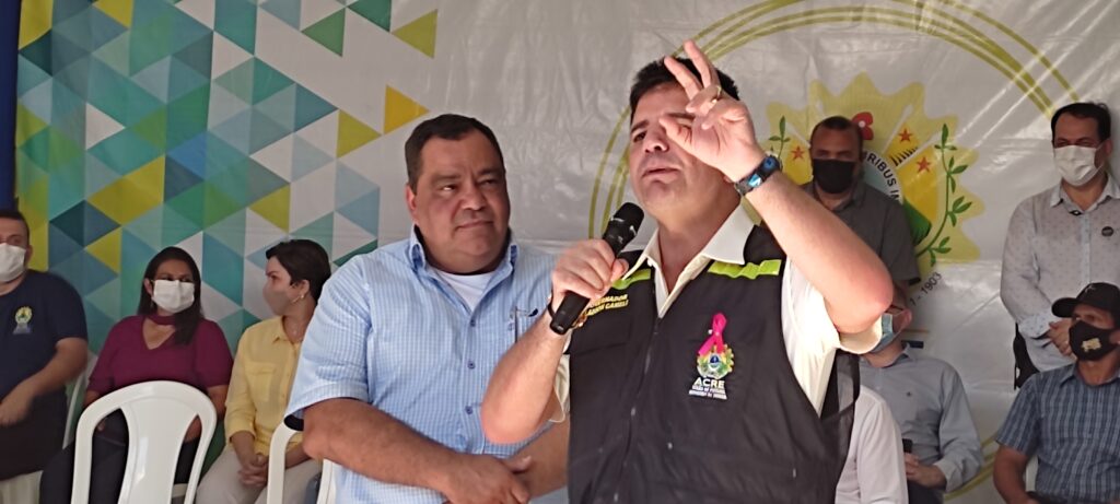Em momento descontraído de sua fala hoje na Escola Raimundo Magalhães em Sena, o governador Gladson Cameli ironizou as declarações feitas do prefeito Mazinho Serafim de que se a ponte do Segundo Distrito saísse o mesmo atravessaria de saia.