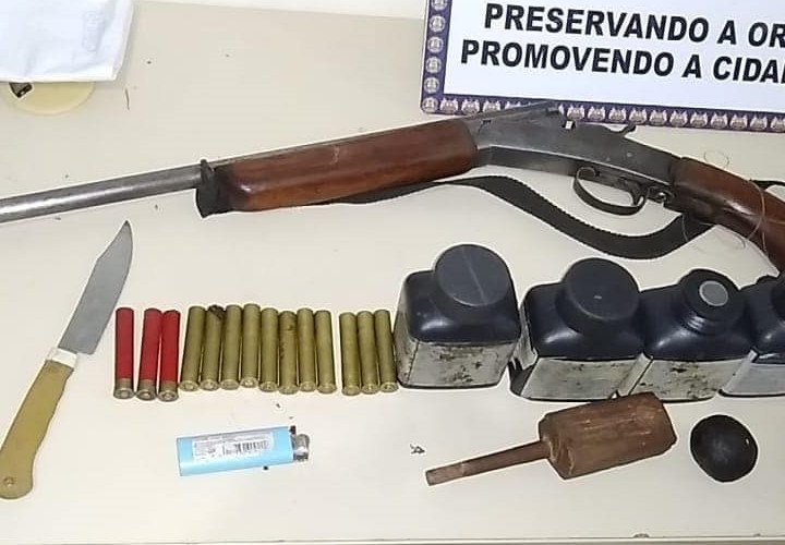 A Polícia Militar, por meio do 8° BPM, CPI realizou a apreensão de uma arma de fogo tipo espingarda cal. 36, munições, bem como, a prisão em flagrante do infrator que ameaçava esposa e outros populares na área rural de Sena Madureira.