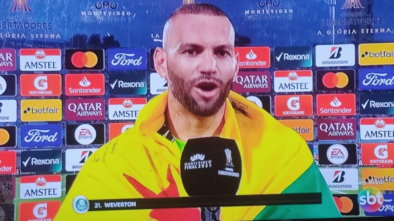 O goleiro acreano Weverton Pereira, defensor do time Palmeiras, vibrou muito ao se tornar tricampeão da Copa Libertadores da América neste sábado (27). Pouco depois do apito final, agradeceu à Deus e dedicou a vitória à família.