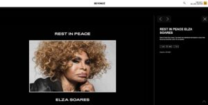 Beyoncé prestou uma homenagem a Elza Soares em seu site oficial. A cantora brasileira morreu nesta quinta-feira (20), aos 91 anos, no Rio de Janeiro.