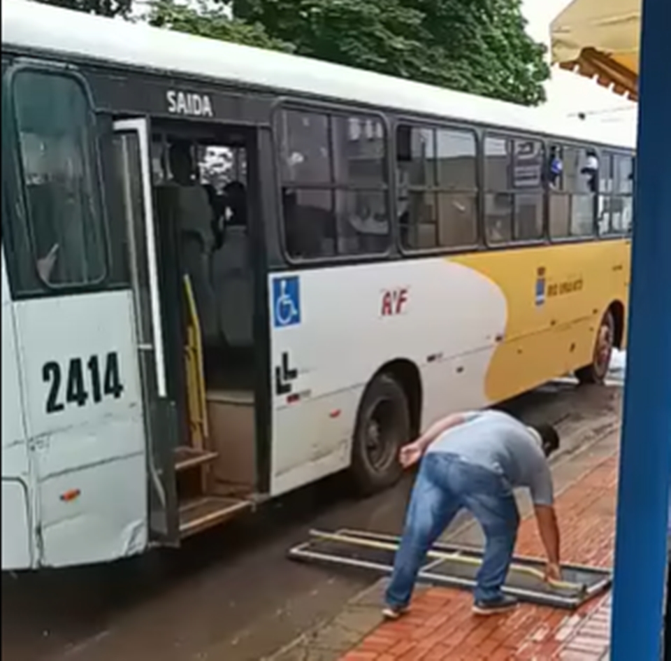 Segundo informações o motorista teria tentado abrir a porta do ônibus quando a mesma acabou caindo no meio da rua chamando atençãp de quem passava pelo local.