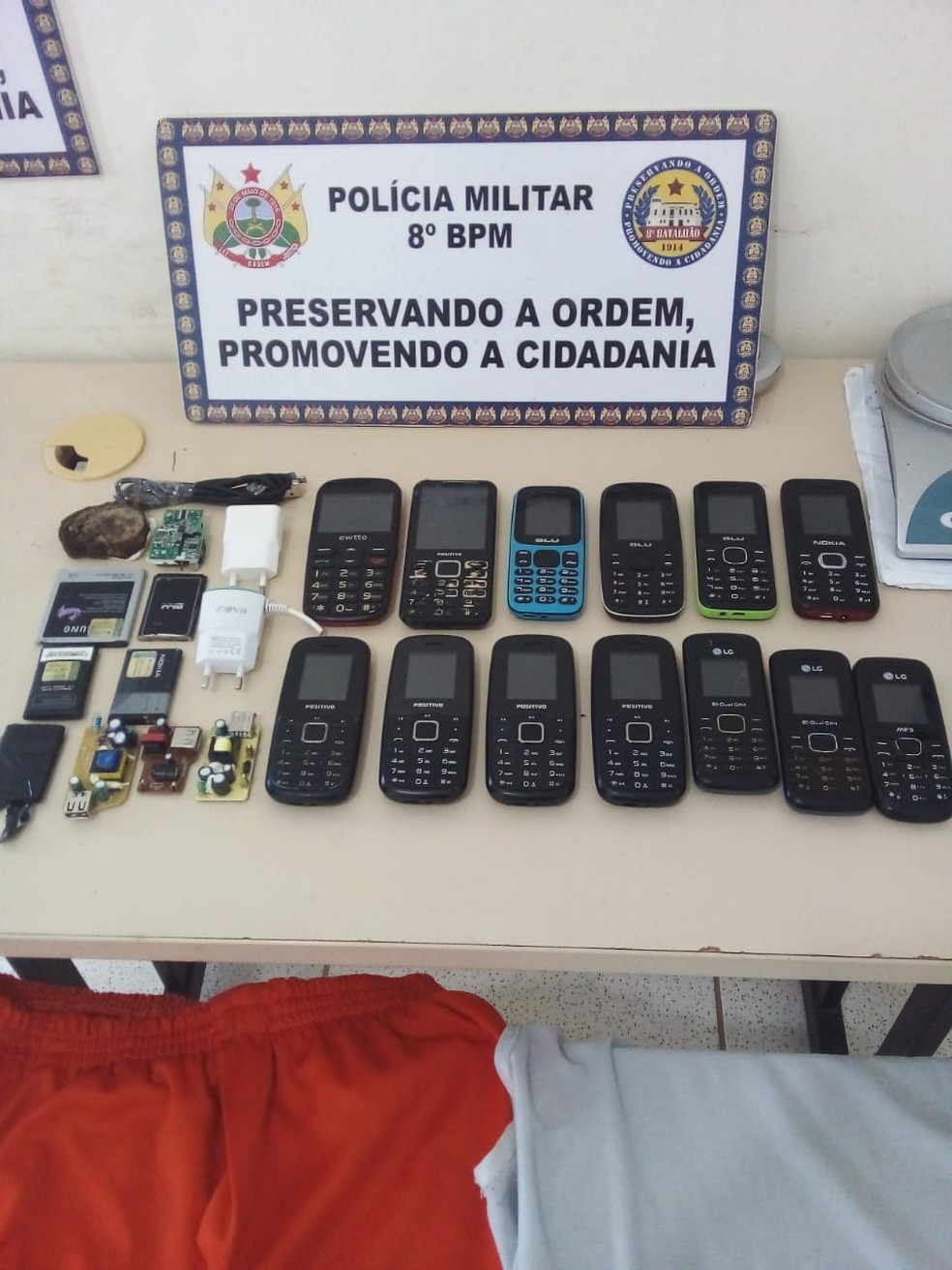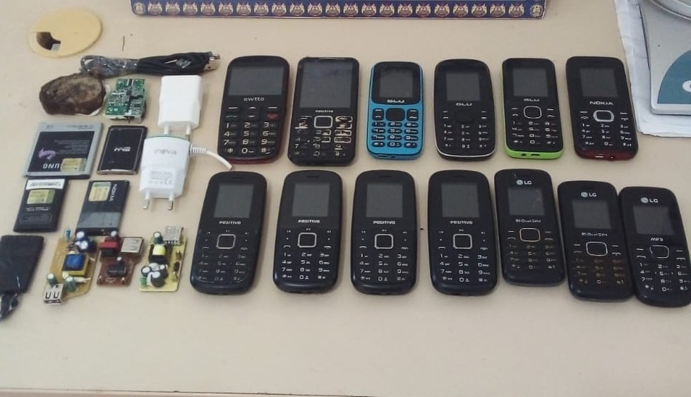 Uma equipe de serviço foi até o local indicado e encontrou invólucros com o material ilícito quando o suspeito se preparava para fazer o arremesso. Os aparelhos foram entregues na delegacia do município.