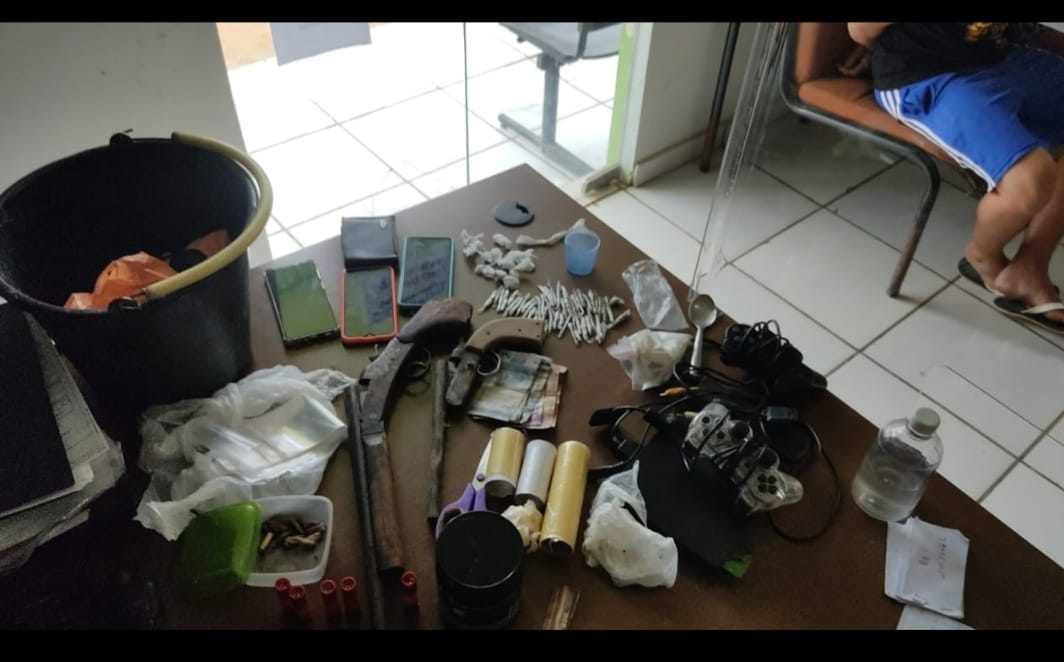 Na ocasião, os militares levantaram à informação que numa residência infratores estavam escondendo materiais ilícitos. Ato contínuo, a equipe policial se deslocou ao local e, após autorização dos proprietários da residência foi logrado êxito na apreensão duas armas de fogos de fabricação caseira, munições e entorpecente do tipo maconha.