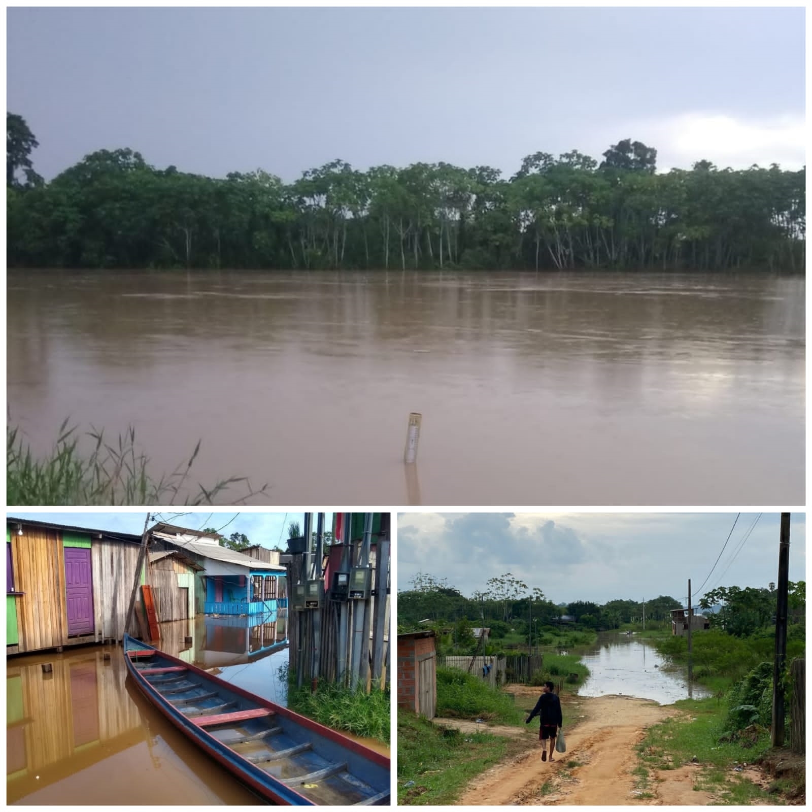 O nível do Rio Iaco em Sena Madureira, no interior do Acre, segue acima da cota de alerta, que é de 14 metros. Segundo dados da Defesa Civil Municipal, o manancial marcou 14,69 metros na medição das 6h desta sexta-feira (25).