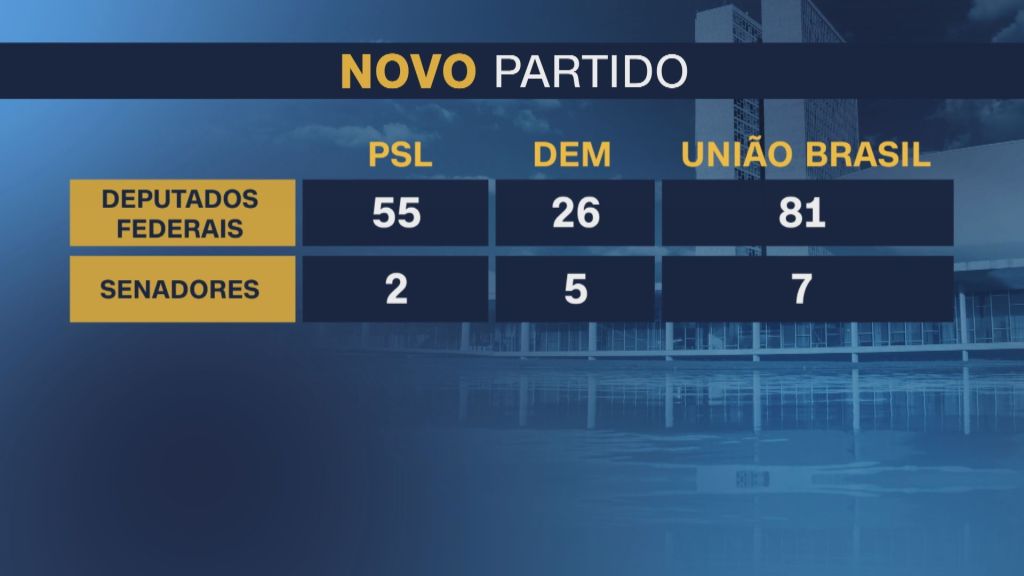 O novo partido terá a maior bancada do Congresso Nacional. Atualmente, na Câmara, o PSL possui 55 deputados e o DEM 26, resultando em 81 parlamentares. Já no Senado Federal, são 5 pelo DEM e 2 pelo PSL, chegando em 7.