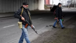 “Equipamento militar ucraniano está chegando agora a Kiev para defendê-la. Estou pedindo a todos os residentes de Kiev – por favor, não filmem isso, não filmem seus movimentos”, disse Denysenko, referindo-se às armas. “Isso é necessário para proteger nossa cidade.”