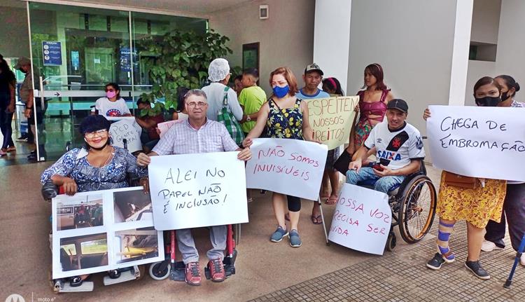 Um grupos de cadeirantes usuários do transporte coletivo da capital Rio Branco realizaram uma manifestação na frente da prefeitura municipal de Rio Branco na manhã desta quarta-feira (16).