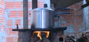 Assim como centenas de outros acreanos, a família vive apenas com a renda de R$ 400 do Auxílio Brasil e ajuda de parentes. Por isso, para economizar, eles improvisaram ao fundo da casa o fogão a lenha para poder economizar no gás.