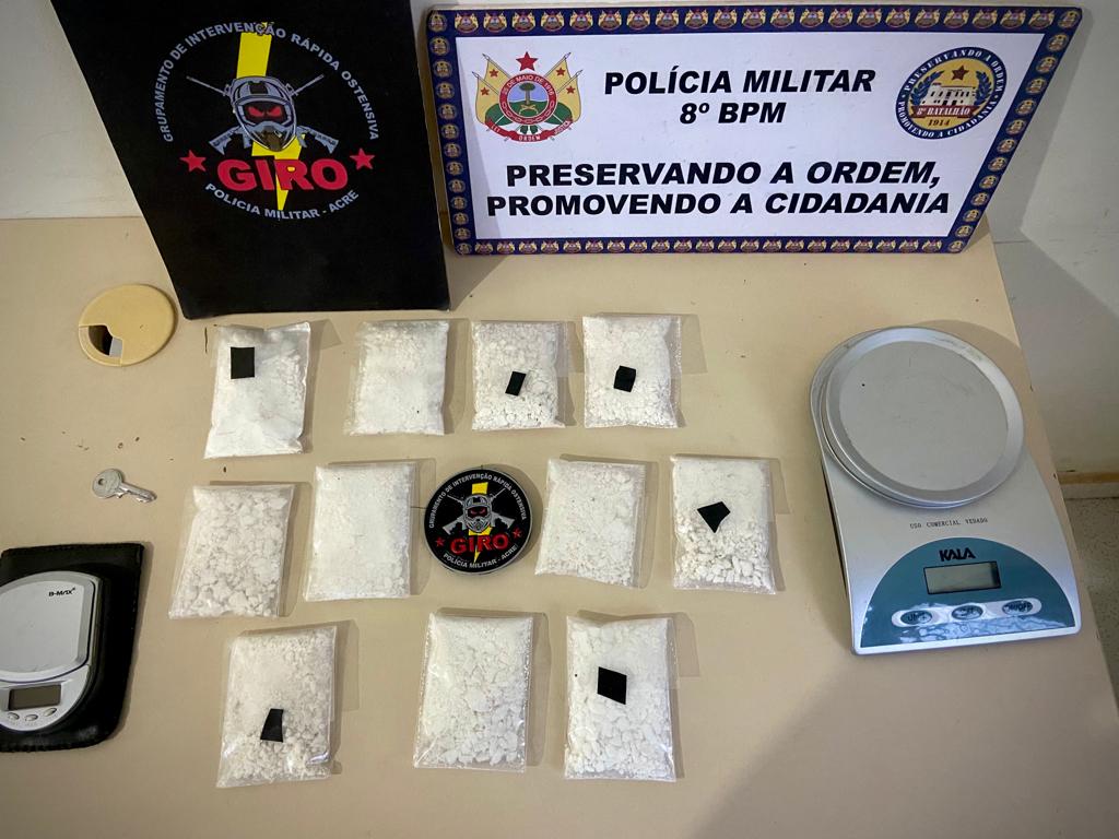 A Polícia Militar, por meio do 8° BPM, através do GIRO conseguiu lograr êxito na apreensão de 11 pacotes de entorpecente.