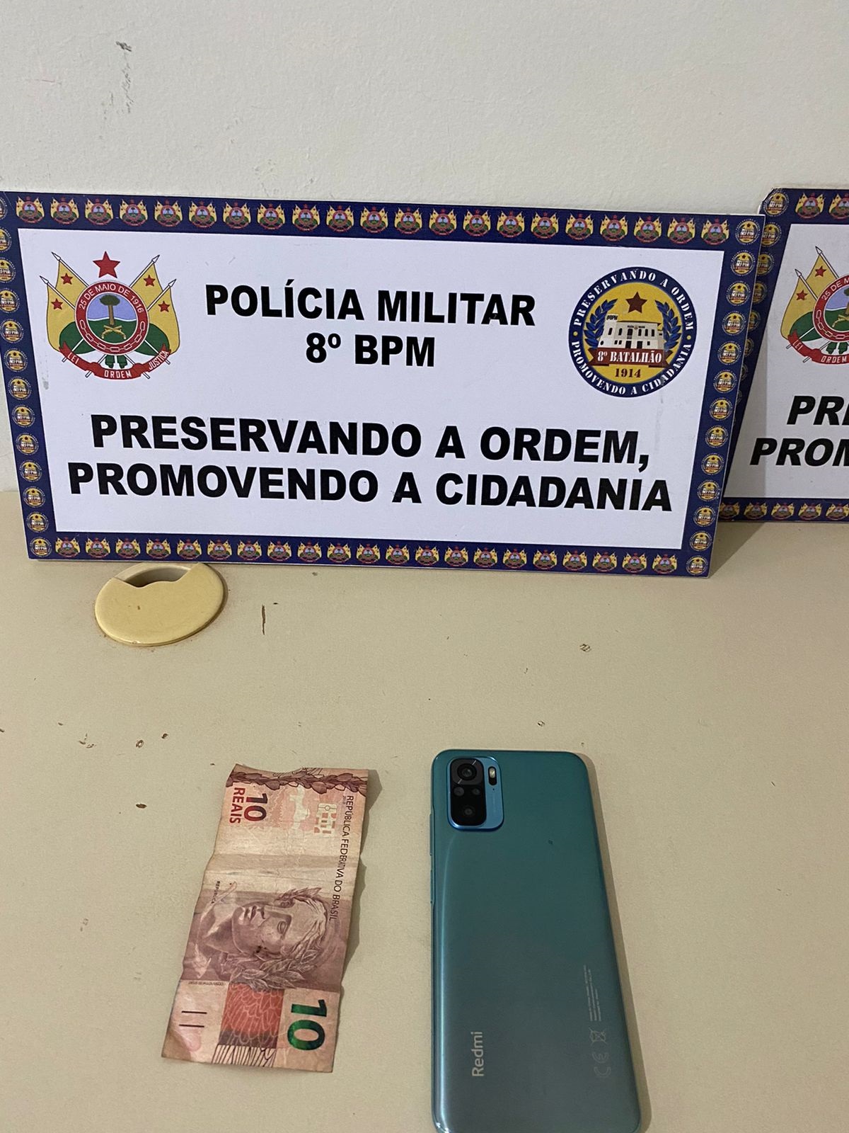 Na abordagem, a guarnição localizou o telefone celular da vítima e dinheiro em posse dos infratores.