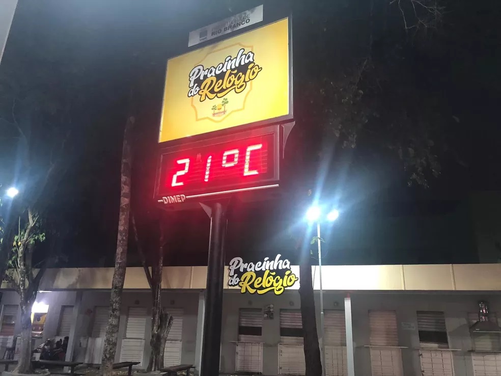 Acrelândia, Bujari, Capixaba, Plácido de Castro, Porto Acre, Senador Guiomard e Rio Branco registraram mínimas de 16°C e máximas de 24°C.