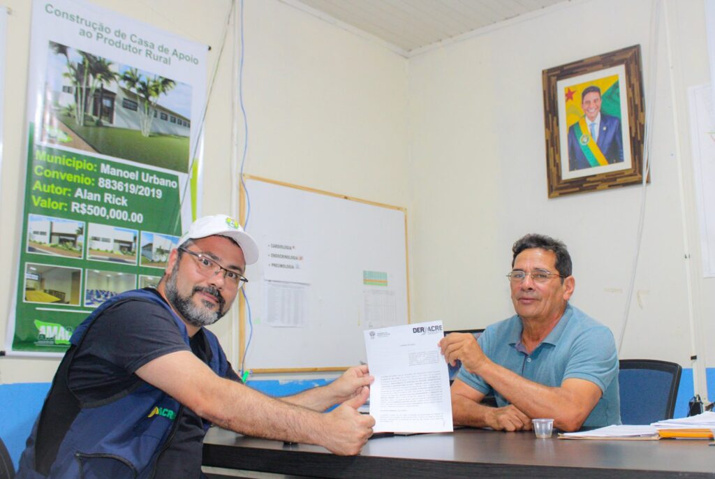 Nesta quarta-feira, 1º, o governo do Estado, por meio do Departamento de Estradas de Rodagem do Acre (Deracre), representado pelo presidente Petronio Antunes, e na presença do prefeito de Manoel Urbano, Raimundo Velozo, assinou convênio de R$ 658,8 mil para a execução dos serviços de melhoramento e manutenção de ramais.