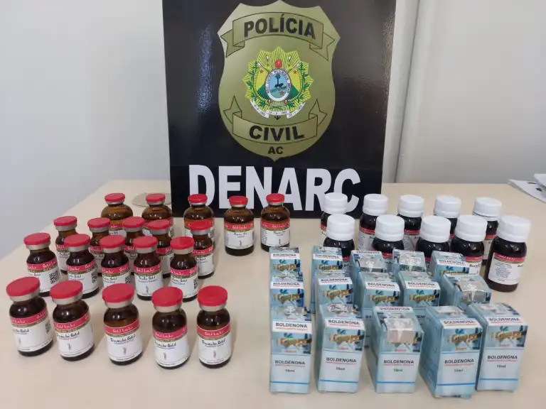 Foram aprendidas vários frascos de supostas substâncias falsificadas de Testosterona, boldenona, stanolozol, oxandrolona.