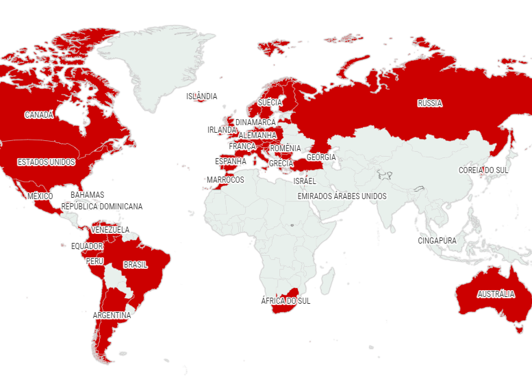 De acordo com levantamento realizado pela CNN, atualizado nesta terça-feira (12), ao menos 55 países confirmaram casos da doença (veja o mapa).