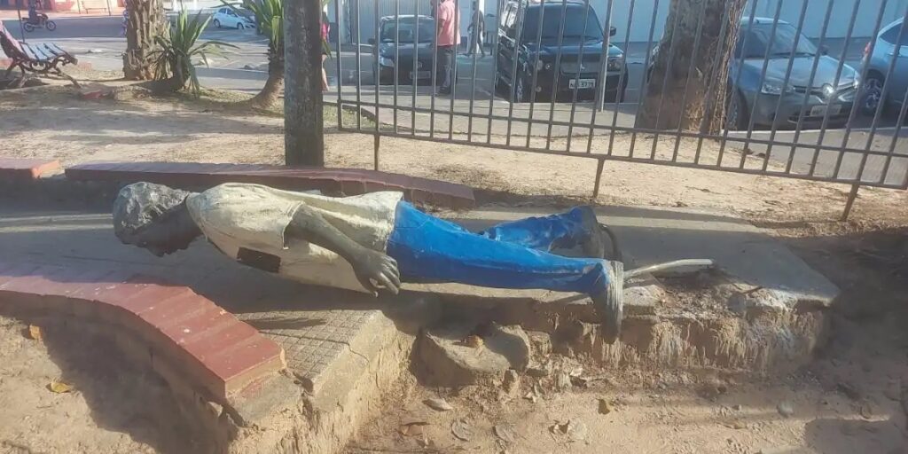 A estátua do líder seringueiro, Chico Mendes, que fica na Praça dos Povos da Floresta, em Rio Branco, foi derrubada. Ao se deparar com a cena, a neta do ambientalista acreano Angélica Mendes externou a sua indignação.