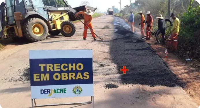 “Iniciamos com a recuperação de sub-base e base nos pontos críticos da estrada, para posteriormente aplicar asfalto do tipo CBUQ (concreto betuminoso usinado a quente); são mais de 40 toneladas de asfalto que devem aplicadas somente hoje”, destacou o engenheiro do Deracre, Edcélio Firmino.