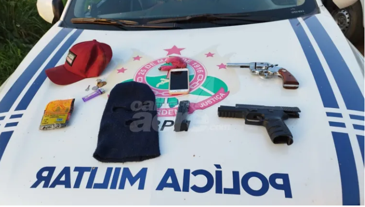 De imediato, os dois receberam voz de prisão. Dando continuidade na revista, foi localizado uma bala clava (touca ninja), que seria utilizada em crimes de roubo e possível tentativa de homicídio ocorrido recentemente na fronteira.