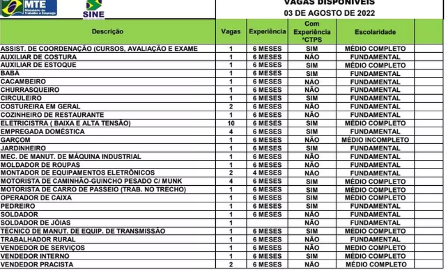 O Sistema Nacional de Emprego do Acre (Sine) disponibiliza 47 vagas para diversas áreas nesta quinta-feira (4) em Rio Branco. O atendimento está sendo feito exclusivamente por telefone.