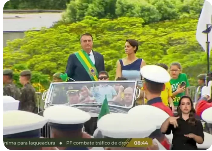 A emissora oficial do governo flagrou uma discussão entre o presidente e a primeira-dama quando eles estavam prestes a deixar o Palácio do Alvorada rumo ao desfile do 7 de setembro, em Brasília. O áudio da conversa não foi captado, mas auxiliares de Bolsonaro relataram o motivo da controvérsia.
