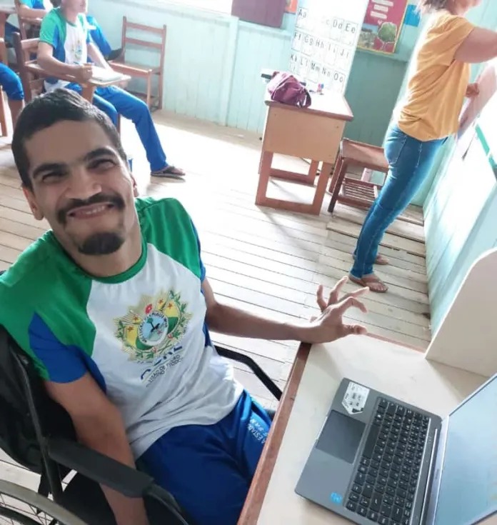 Samoel Andrade é um grande exemplo de superação. Ele estuda a 8ª séria na Escola Estadual Charles Santos, localizada no pólo Elias Moreira.