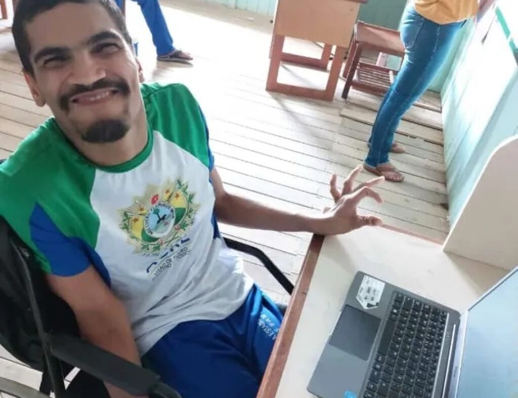 Samoel Andrade é um grande exemplo de superação. Ele estuda a 8ª séria na Escola Estadual Charles Santos, localizada no pólo Elias Moreira.