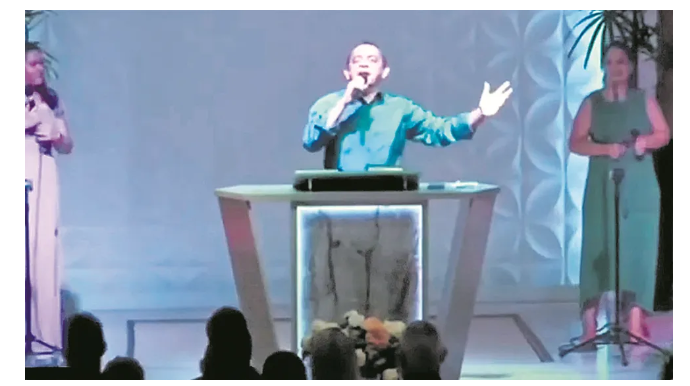 “Tá errado isso aqui. Tá errado! Isso aqui é a casa do Senhor. Isso aqui não é lugar de política. Vocês estão todos errados. Eu vim aqui emprestar minha voz ao culto. Eu não vim aqui fazer isso”, disse.