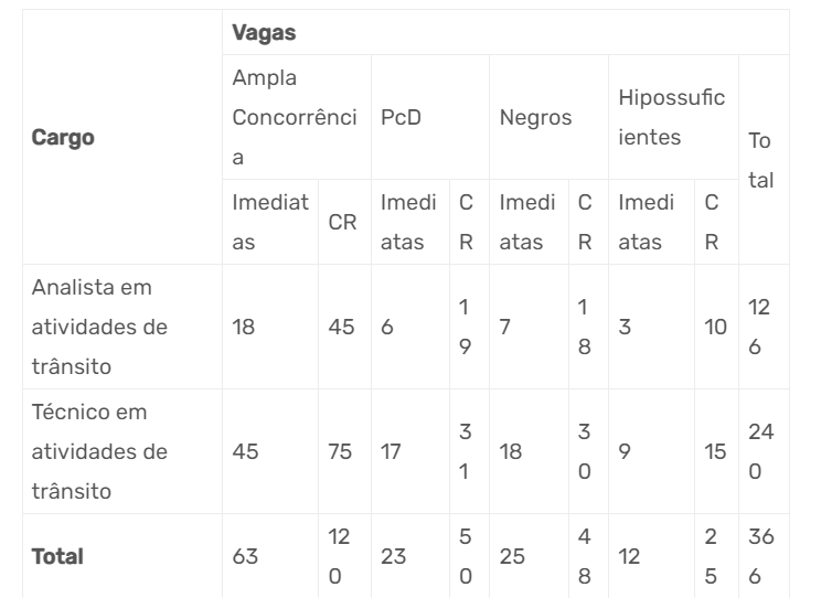 240 vagas para o técnico em atividades de trânsito; e