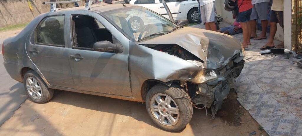 Segundo informações, a moto estava estacionada em frente ao ponto das panelas, do seu Joca. Parte da estrutura em alvenaria também foi afetada por conta do forte impacto.