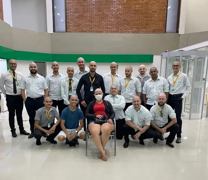 “Reunimos todos os homens da cooperativa de crédito e propomos a ideia: raspar a cabeça em apoio ao momento da colega de trabalho. No mesmo instante todos se voluntariaram e antes de irmos ao barbeiro, procuramos nossa diretoria, que disse não haver problema na questão e ainda fomos abraçados pela empresa”, conta Walisson Barbosa, um dos funcionários envolvidos na corrente solidária.