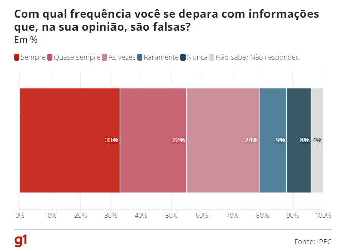 O Ipec também perguntou aos entrevistados com qual frequência eles se deparam com informações falsas.