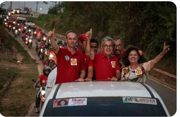 Os candidatos a deputados federais Leo de Brito (PT) e Perpétua Almeida (P C do B), marcaram presença junto com os candidatos a deputados estaduais Cesário Braga (PT), Idésio (PT), e Joãozinho (PT).