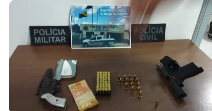 Ao chegar na casa abandonada, os policiais visualizaram dois suspeitos, sendo que os mesmos são conhecidos por integrar organização criminosa e haviam sido presos há uma semana. No momento da abordagem foi percebido que os dois tentaram esconder alguma coisa dentro de uma caixa de som velha. Ao ser feita a verificação, os policiais encontraram um revólver, calibre 32, com uma munição batida.