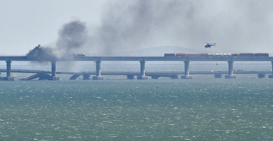A ponte rodoviária e ferroviária, construída por ordem do presidente Vladimir Putin e inaugurada em 2018, é a única via ligando a Crimeia à Rússia, sendo atualmente usada principalmente para transportar equipamentos militares para as forças armadas russas na guerra contra a Ucrânia.