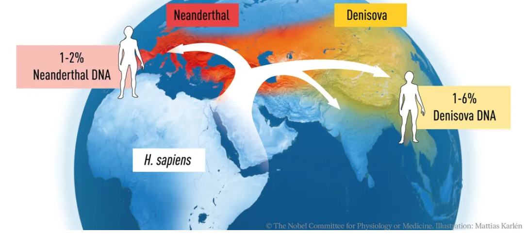 Pääbo também descobriu que a transferência de genes ocorreu desses hominídeos agora extintos para o Homo sapiens (a espécie à qual pertencemos) após a saída migratória humana da África há cerca de 70.000 anos, uma informação importante que ajuda a entender como o mundo era povoado nessa época.