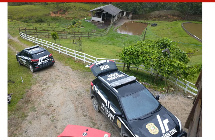 No cumprimento de um mandado de busca e apreensão no sítio onde foram encontrados os homens, a polícia localizou equipamentos eletrônicos e outros objetos que passarão por perícia.