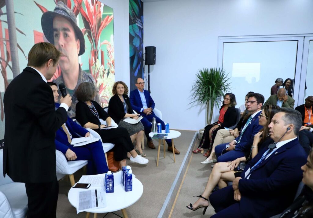 Representantes da Alemanha, Reino Unido, Colômbia, Equador, Mato Grosso e Acre celebraram os 10 anos do Programa REM, no final da tarde desta segunda-feira, 14, no miniauditório do Consórcio da Amazônia Legal, na 27ª Conferência das Nações Unidas sobre Mudanças Climáticas, a COP 27, em Sharm El Sheikh, no Egito.