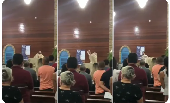 Ainda segundo um fiel, que não quis se identificar, algumas pessoas fizeram o símbolo do “L” com as mãos para o sacerdote, que não gostou do gesto. O vídeo registrou o momento da discussão. Em seguida, o sacerdote diz: