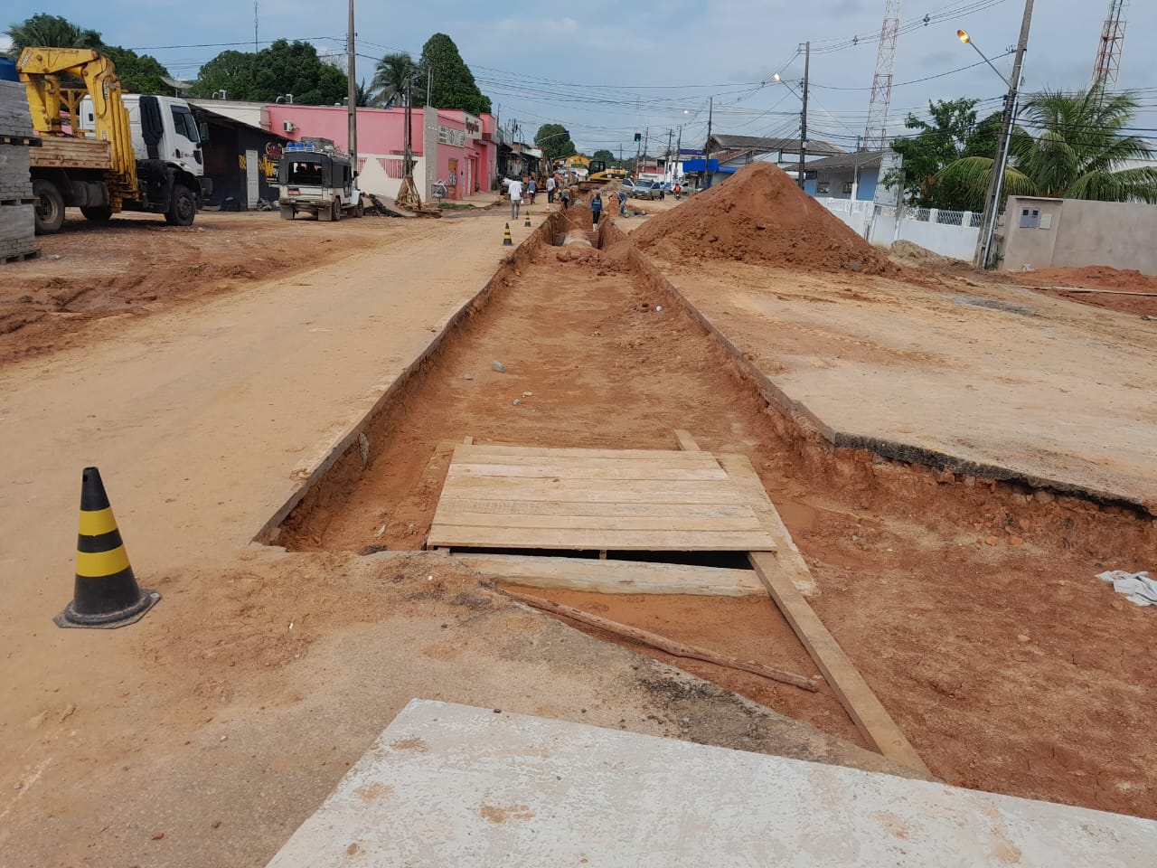 No local, foi feita uma escavação para a implantação de vários bueiros que irão canalizar a água para o igarapé chá e evitar maiores transtornos futuramente. Quem passa pelo local percebe a complexidade da obra.