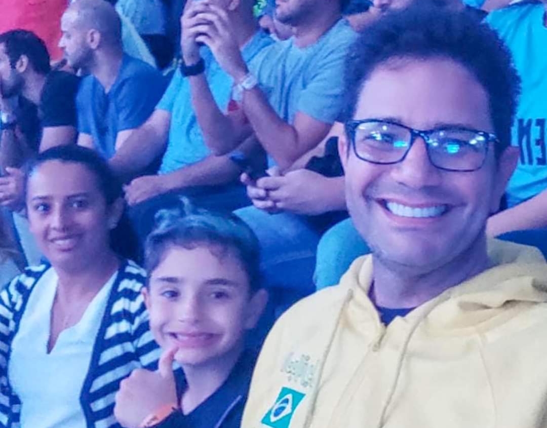 Após o jogo, Cameli publicou fotos e disse ser “pé quente”. Guilherme estava vestido com uma camisa da Argentina.
